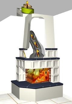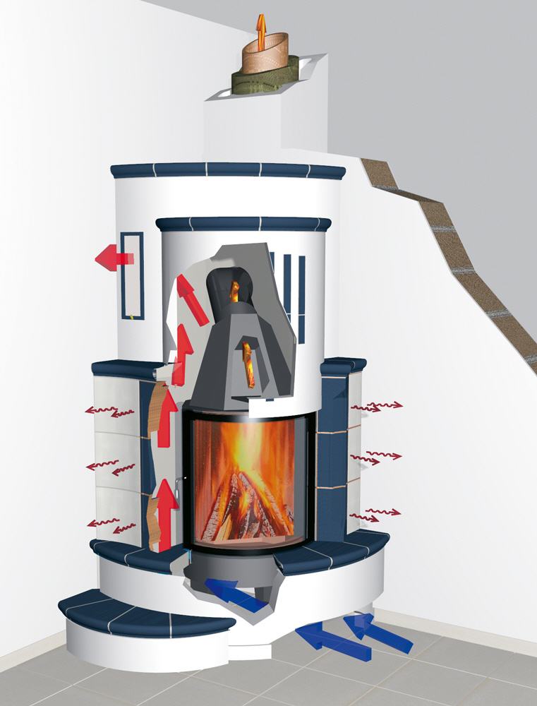 Bei manchen Kaminheizeinsätzen, besteht die Möglichkeit ein keramisches Zugsystem aufzubauen. So kann ein Anteil der Wärmeenergie zwischengespeichert werden, welche dann zeitverzögert an den Raum abgegeben wird.